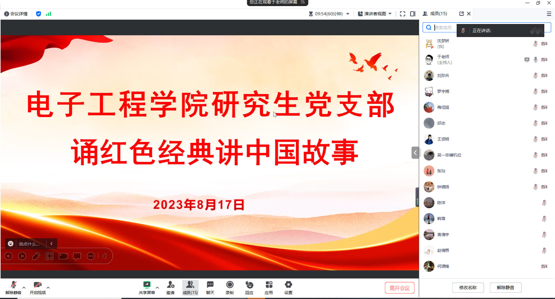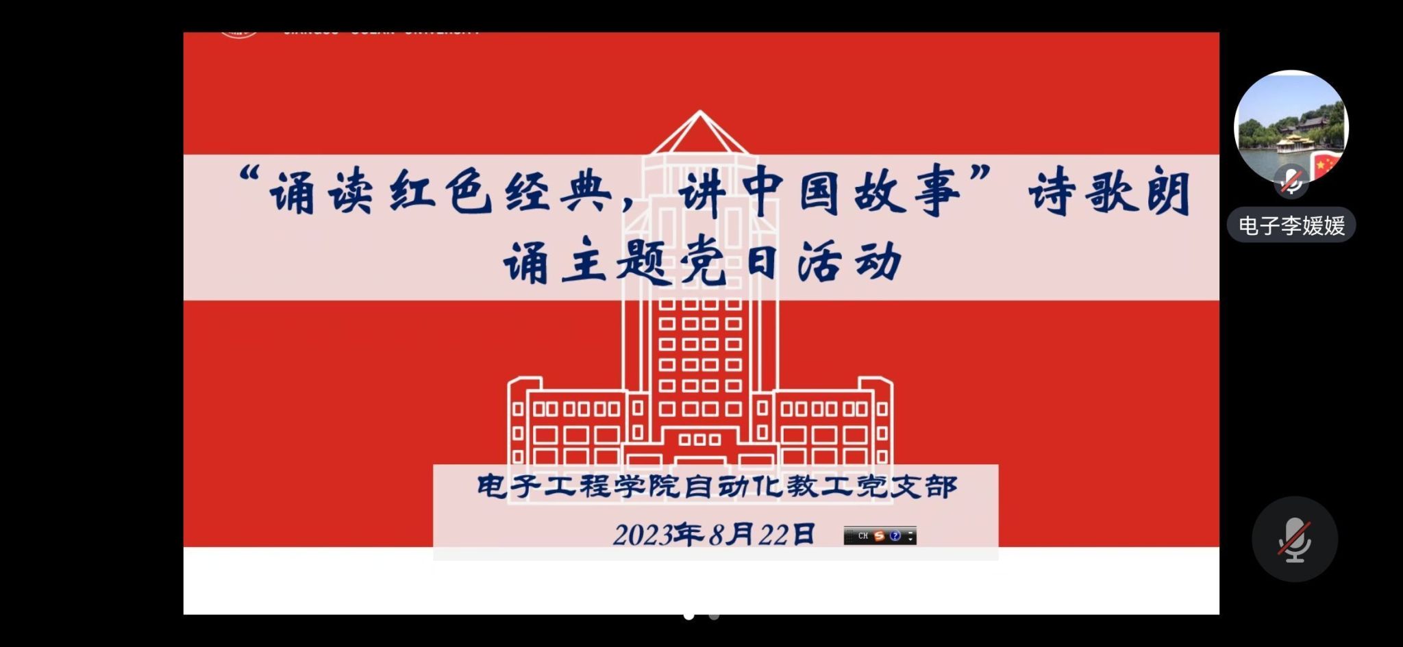 本次活动采用诗歌朗诵、互动讨论等方式,领悟在时间长河中代代传承的红色精神,感受信仰的力量。有的支部诵读红色诗歌,有的讲述习近平总书记领航定向、指引青年师生成长成才的动人故事,有的讲述今昔对照、内外比较,有的讲述党的创新理论学习体会和汲取真理力量学习成效。深情诵读、倾情讲述,抒发对祖国的深深热爱,引起现场强烈的共鸣。