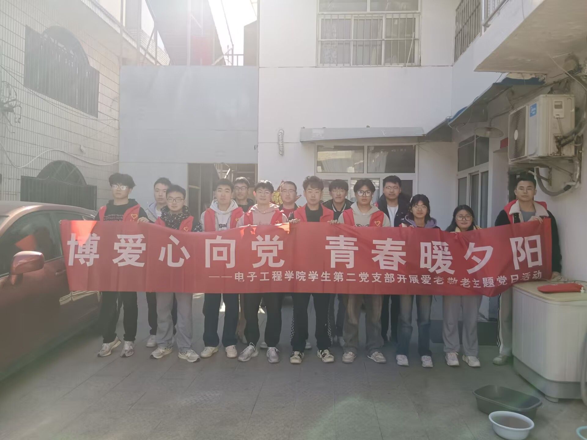 电子工程学院学生第二党支部将始终坚持以党建为引领,坚定支部志愿服务活动长效化和常态化的信念,通过以相互关爱、服务社会为主题,围绕老人、儿童群体,组织开展各类形式的志愿服务活动,让学生党员深入到社会基层,在群众中普及传播社会主义核心价值观,在实践中引领社会文明新风。