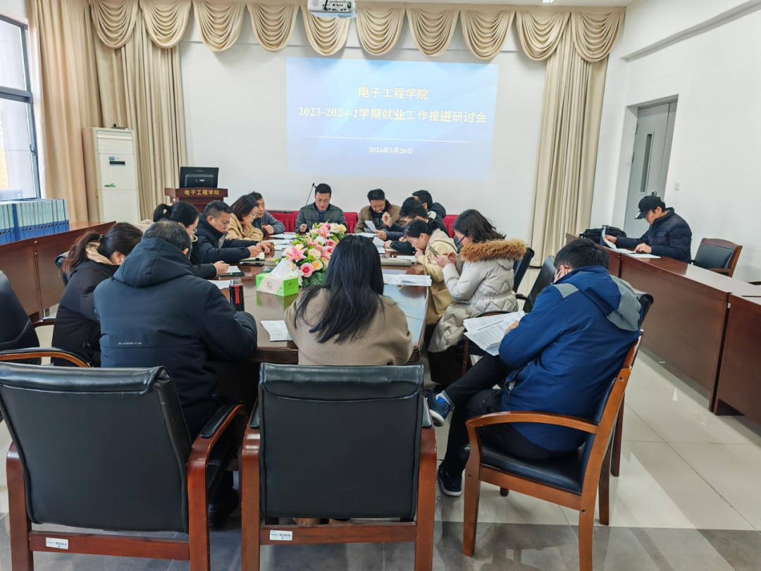 为强化责任落实,实现我院毕业生更充分、更高质量就业,3月20日下午,电子工程学院召开2023-2024-2学期就业工作推进研讨会,学院党委书记马志同、副书记张玲、副院长刘强、全体系主任、毕业班班主任、辅导员参会。