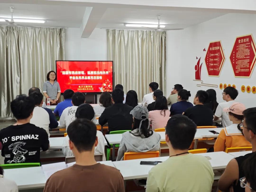 青春不散场,奋斗正当时。为进一步加强毕业生党员党性教育,做好毕业生离校教育和思想政治工作,引导毕业生党员在党纪教育中学思践悟,坚定理想信念,厚植爱国爱校情怀,5月24日下午,电子工程学院召开了毕业生党员主题党日系列活动,通过多种形式开展“引航、领航、导航、助航”毕业生党员理想信念教育,增强毕业生党员意识和党性修养。电子工程学院党委书记马志同,电子工程学院关心下一代工作委员会副主任周渊深,青年博士周晨阳,全体辅导员及2024届全体毕业生党员参加了活动,电子工程学院党委副书记张玲主持活动。