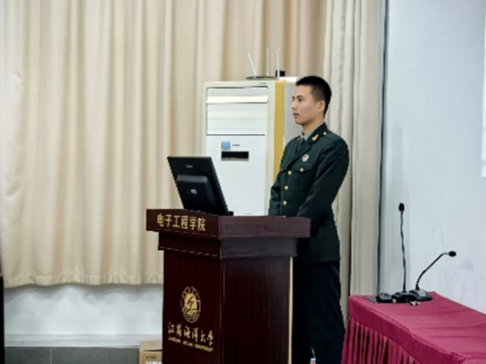 为进一步提升我院学生国防观念和国防意识,推动学院2025年征兵宣传动员工作,强化学生国家安全意识、忧患意识,2024年11月15日晚,电子工程学院学生第二党支部以“心系国防,有你有我”为主题,特别邀请学院退伍大学生郭聪宇、陈伯华、刘小浪三位同学开展国防安全教育讲座,电子工程学院新一批入党积极分子参会,学生第二党支部书记丁小青主持会议。