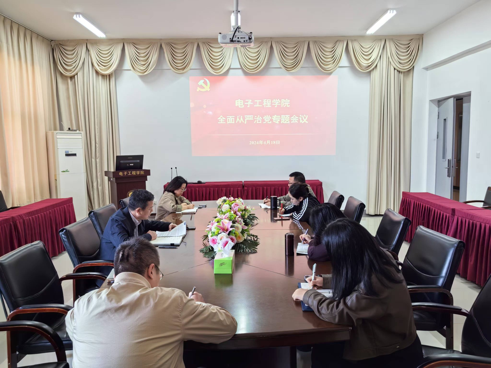 2024年4月18日,电子工程学院召开2024年全面从严治党专题会议。会议由党委书记马志同主持,全体支部书记参加会议。