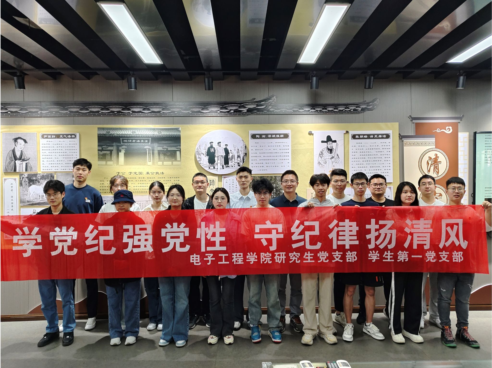 为深入学习贯彻习近平新时代中国特色社会主义思想,弘扬清风正气,进一步增强支部党员的党性修养和凝聚力,5月24日,电子工程学院研究生党支部联合学生第一党支部组织全体党员赴孔望山开展主题党日活动。此次活动以“学党纪强党性,守纪律扬清风”为主题,结合传统文化与红色教育,既丰富了党员精神生活,也强化了支部党建成效。