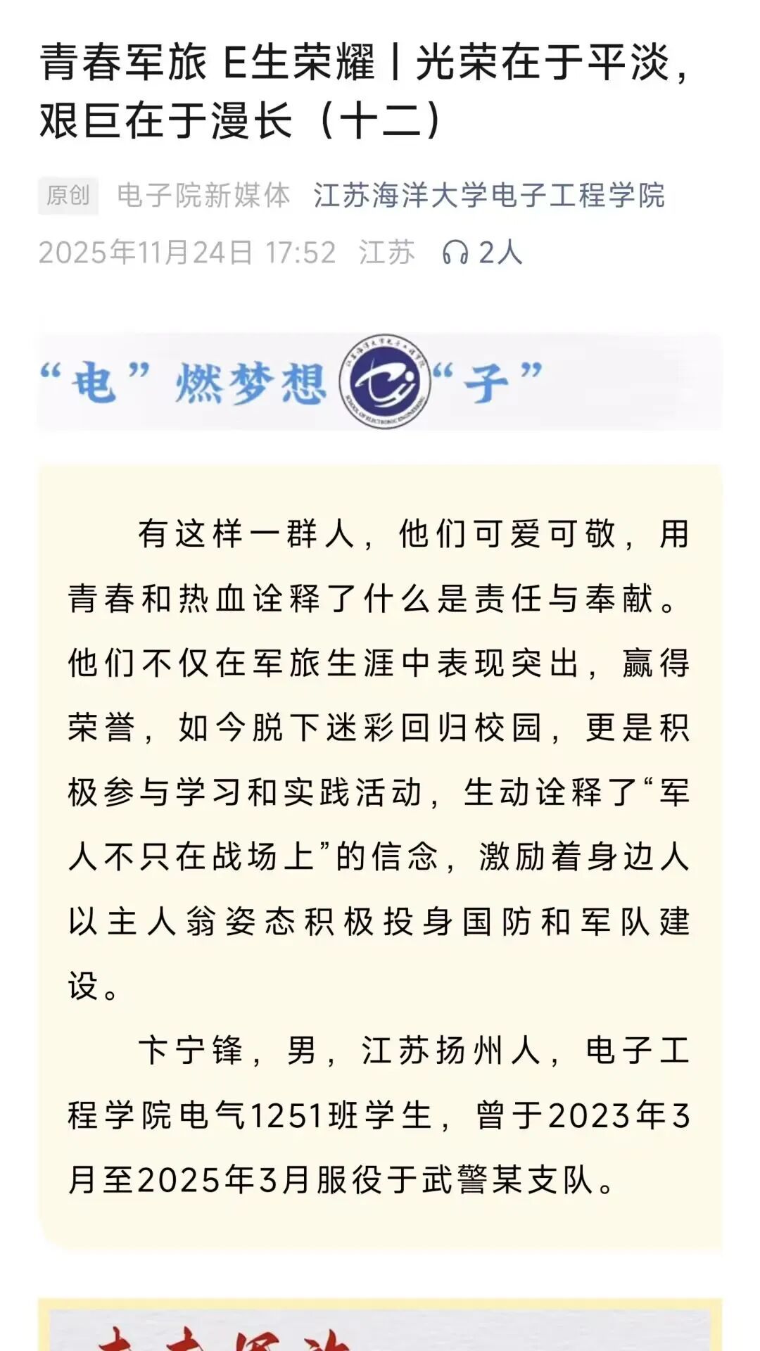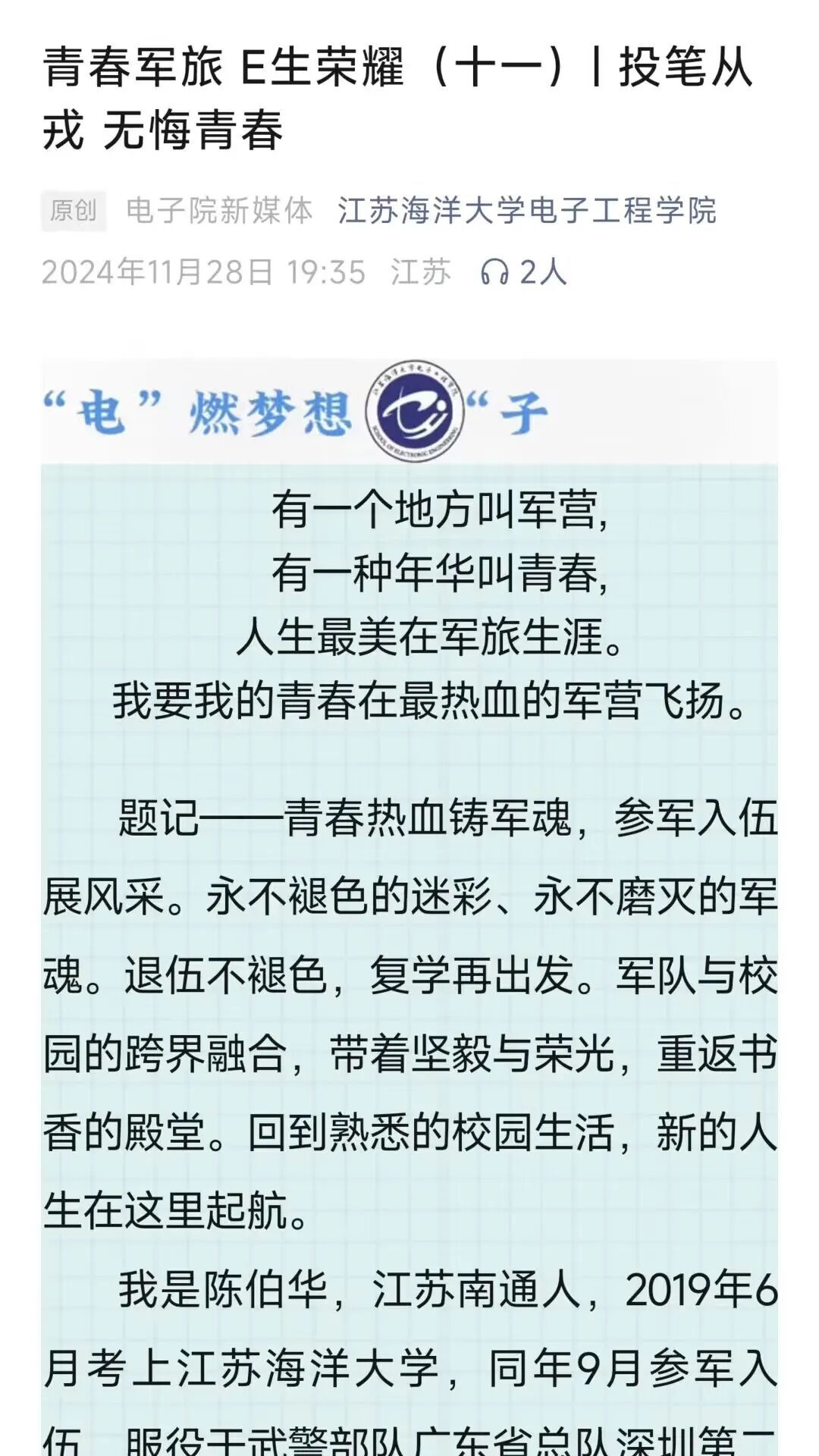 》青春军旅 E生荣耀 | 退伍大学生事迹宣传
