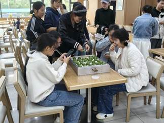 活动现场艾草清香四溢,同学们围坐协作,揉面、包馅、塑形,手法从生涩到娴熟,一个个翠绿饱满的青团陆续成型。大家交流技巧、分享节日感悟,在欢声笑语中体验传统民俗,感受春日气息。